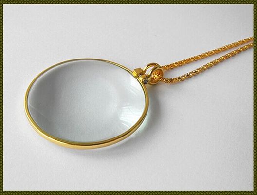 1) With a 90mm necklace ring 2) Silver and golden color for choice 3) With 5X magnification 4) Simple round magnifying glass pendant 5) Pendant can be removed from the necklace ring 6) Excellent as gifts to promote brand and business 7) CE, Factory Audit, ISO9001:2000 8) High quality and wholesale price |
